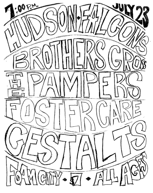 Local punk band THE GESTALTS, whose members have 98.65 times as many miles on the road with the HUDSON FALCONS than with the GESTALTS, will be along for the ride with THE PAMPERS and FOSTER CARE, a pair of NYC punks outfits featuring members of CARBONAS and EX-HUMANS.